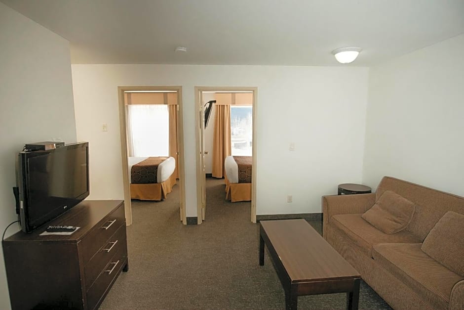 2 Queen Beds and 1 Sofa Bed 2 Room Suite Non-Smoking is 291 square feet and includes 2 queen-size beds 150-154 width plus a sofa bed plus cable tv, ironing set, and safe.